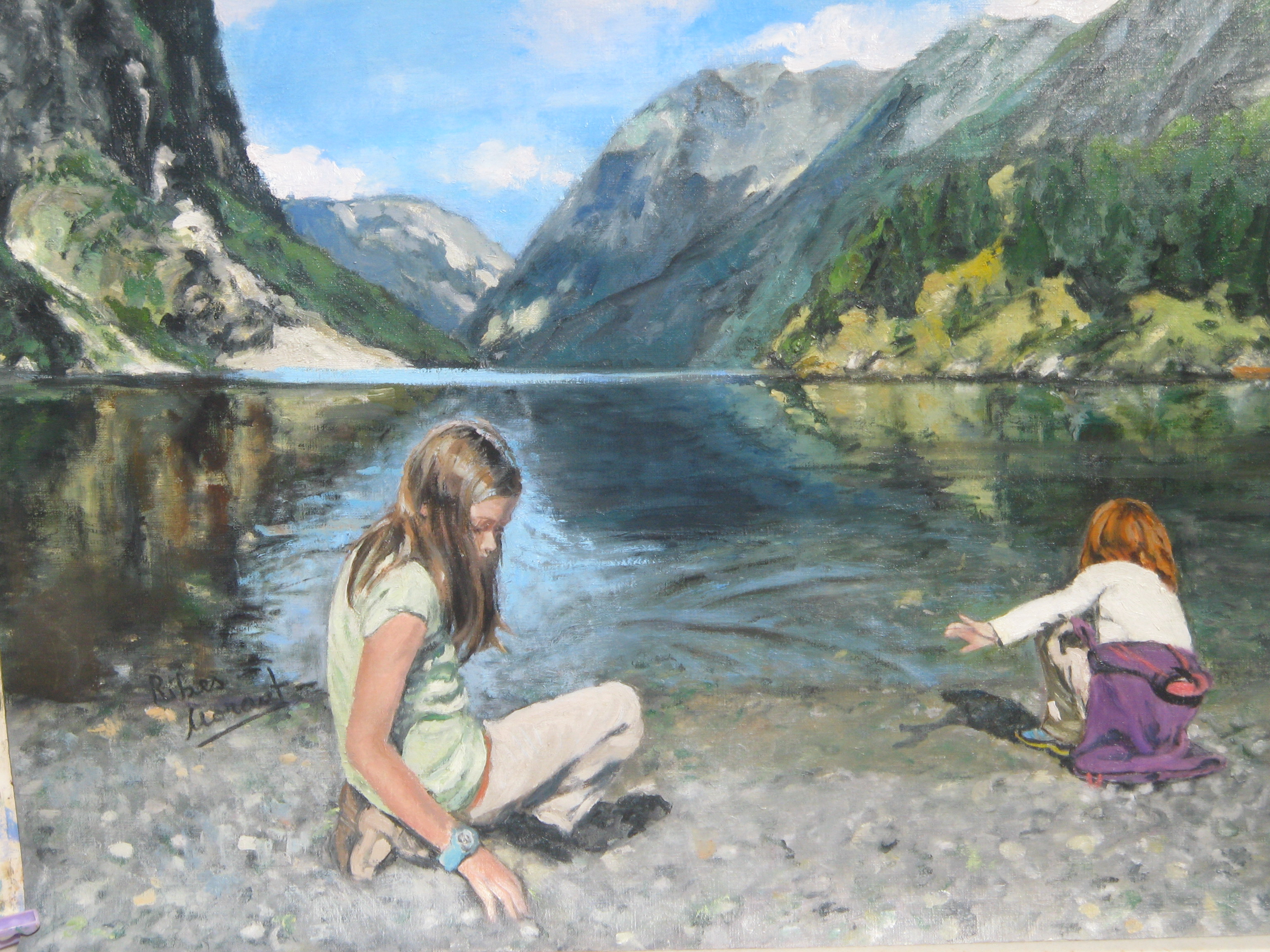I was excited to paint a snowy space and this is the first work in which I have recreated this illusion. Bluish shadows between the whiteness of the snow bathed in sunshine; autumn vegetation and leaden sky, they invite to seek refuge indoors.